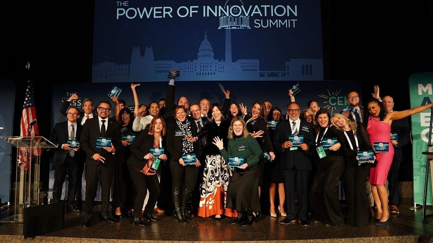In a powerful finale to an extraordinary year, the Yass Prize delivered one of its most thrilling announcements to date - $3.8 million awarded to advance innovative, sustainable, and student-centered education organizations across the nation. Unveiled at the Power of Innovation Summit in our nation’s capital, Jeff and Janine Yass not only crowned the $1 million Yass Prize winner - Chesterton Schools Network - but surprised the audience and expanded the circle of changemakers with four additional $250,000 finalists and 18 semifinalists earning $100,000 for their organizations.